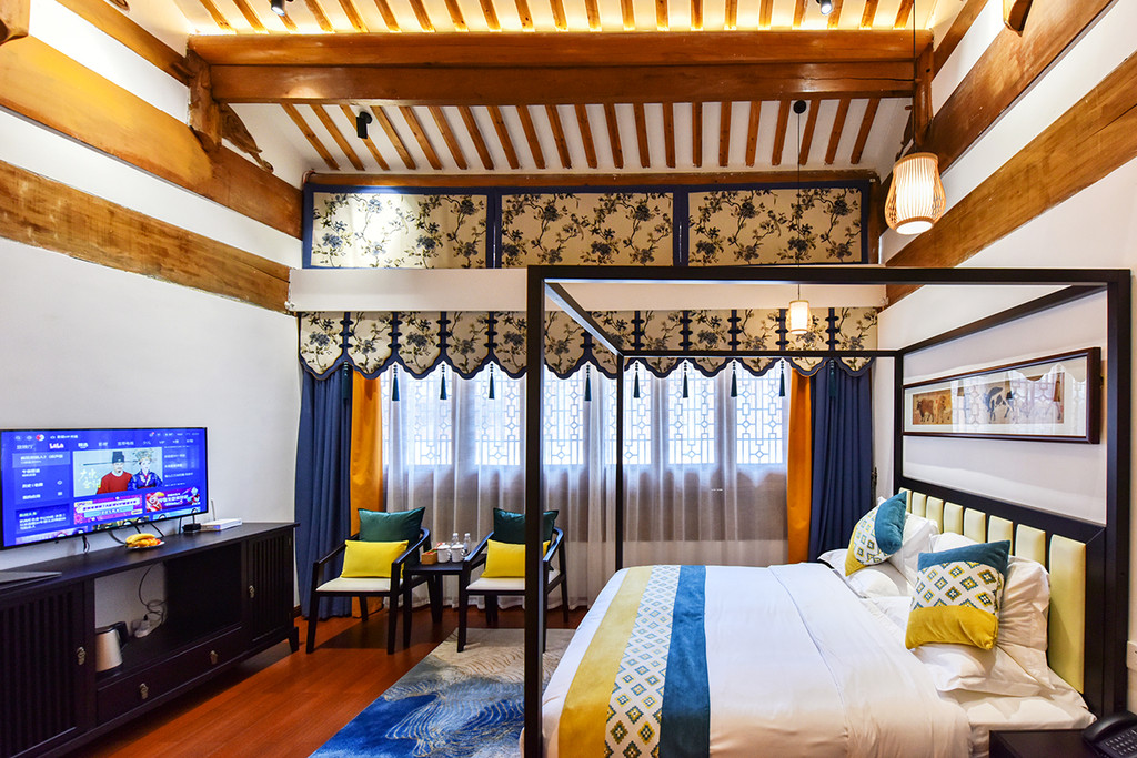 酒店有26间各色江景客房、庭院客房等等不同规格的客房,还有中型会议室,多功能厅以及私享茶室、共享书吧、网红中堂、文创展销中心、书法创作空间等共享空间,每一处都精美如诗,住与玩,亦是其它,在这里,都妥妥了。