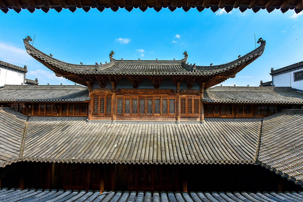 青瓦灰墙,飞檐翘角,雕龙画凤,七冲、八巷、九条街,井字排开的古窨屋建筑群,默默向我们展现着江南古民居的建筑之美。