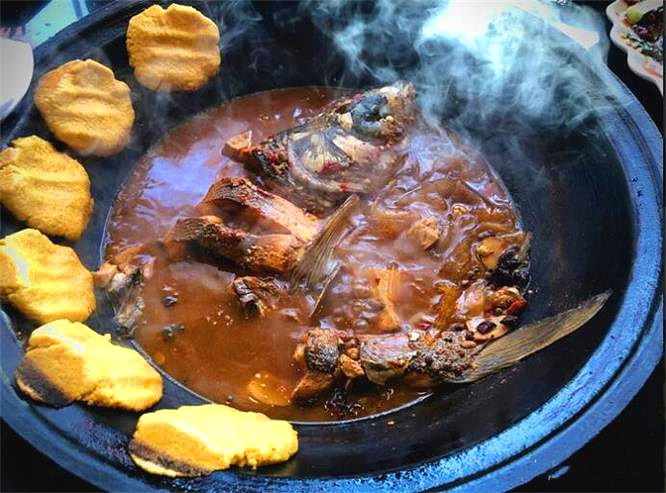 开锅了。揭开锅盖,就迫不及待地拿下锅沿上贴着的那几块金灿灿的玉米饼子。咬一口,粗中有细,细腻中又透着一股韧劲,不仅耐嚼而且耐品;没放糖,却自然透出一股甜香;纯正的农家口味,纯正的玉米鲜香。不愧是水库的鱼,夹一口细嚼,口感香滑、鲜嫩,且肉质紧密,与我们平时所食的松散、无力的河鱼肉全是两种境地.