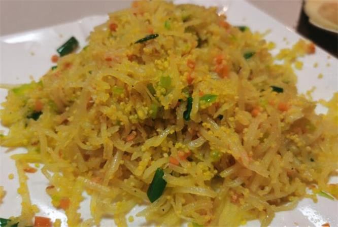 小米饭炒土豆丝估计很多人都没有吃过,老板娘力推这道菜,味道真的让人出乎意料。