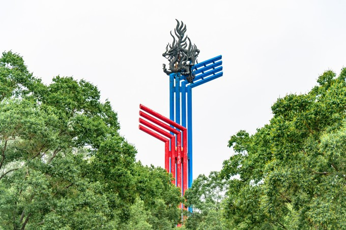 南北方分界标志雕塑是必须要来看一看的。雕塑顶部有一座腾龙图案,下方四个方位是青龙、白虎、玄武、朱雀四大神兽(分别代表东、南、西、北四个方位)。它是根据气候把南北方分开,蓝色指向为南方,红色指向为北方。这也就对应了 蚌埠 市位于 中国 南北地理分界线秦岭—淮河一线的说法。