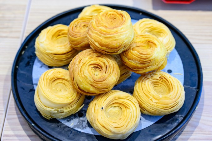 每每和外地朋友介绍大救驾时,我都会形容它为我们当地的“月饼”,有点区别的是,大救驾成品形状为扁圆,色为乳黄,中间呈急流漩涡状,多层花酥叠起,犹如金丝盘绕。内里的馅料也更加丰富,甚至可多达十余种。大救驾最好吃的时候就是刚出锅时,把油沥干以后就吃,且一定要用菜籽油来炸。