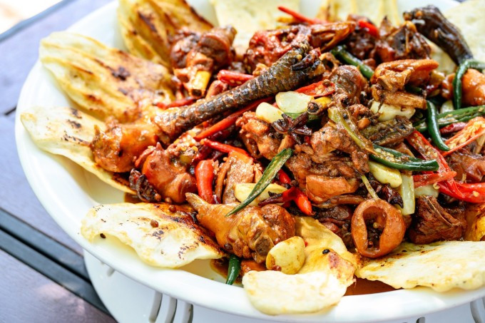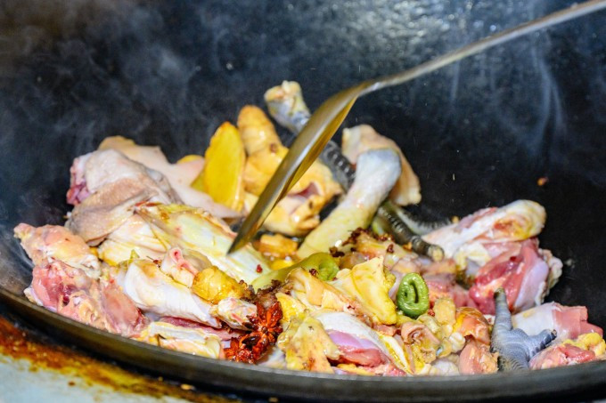 榴园地锅鸡选用的是在石榴园里散养本地鸡,喂食石榴籽和青草。烹饪的灶台也是用石榴干支生火、地锅烹饪,并开发出了本帮、麻辣、啤酒、菠萝四种口味。不来明清石榴园,你还真不一定能吃到这么有代表性的地锅鸡。
