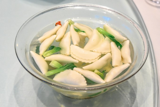 豆腐宴的菜品多达十几种,这里首推菊花豆腐盅。这道菜颇有几分淮扬菜的精髓,以精湛的十字花刀把豆腐切成菊花状,再蒸熟倒入鸡汤即可。可以起到清热明目,益气宽中的作用。看似简单的一道菜,却考验了厨师的刀工,以及食材的新鲜和本味,同时价格也非常亲民。