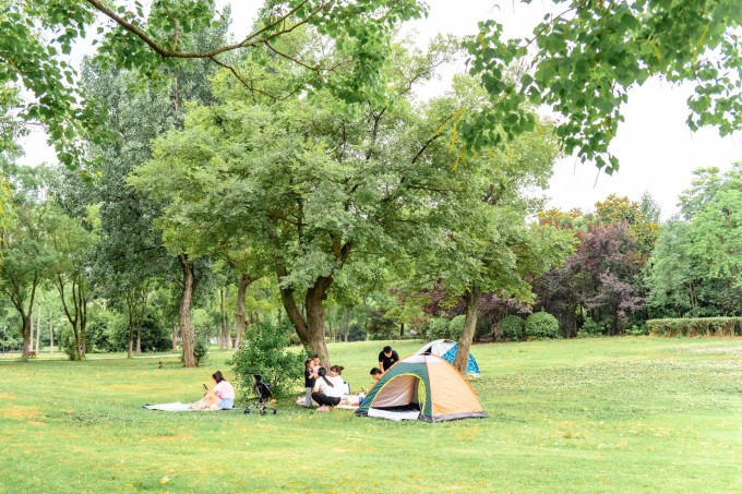 张公山公园不算太大,也是对游客免费开放。除了看地标,还可以在公园的湖面上划船,以及在木栈道上散步。另外我发现张公山公园也是一处露营宝藏地,这里的青草地很多,环境也好,早早的就有人搭起了天幕,十分悠哉!