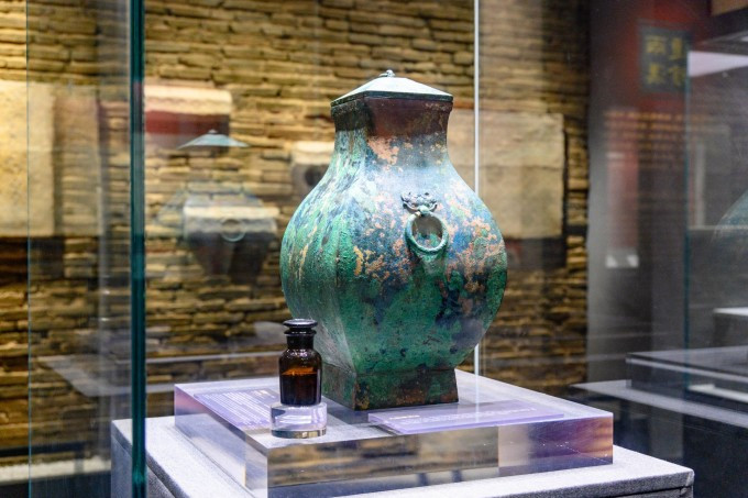 这座博物馆内有七件镇馆之宝,一路上解说听得我也是意犹未尽。由于内容较多,我这里就没办法一一给大家做介绍了。值得一提的是, 安徽 省博物院里的镇馆之宝——铸客大鼎也是出土自 寿县 ,在楚文化博物馆内有一个花了24万一比一复制的大鼎。