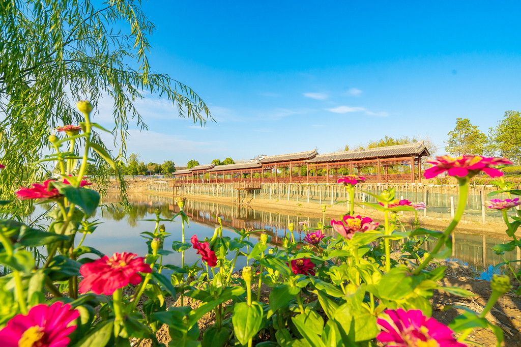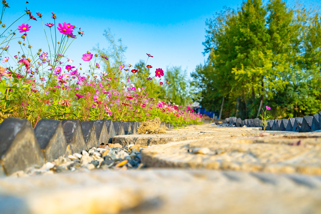 千万不能错过院子旁边的水面,围绕水面有一圈很美的磨盘路,沿着小路种满了色彩绚丽的小花,这个季节开的正好,拍照特别出片。