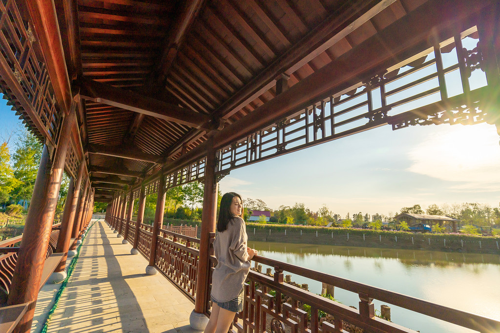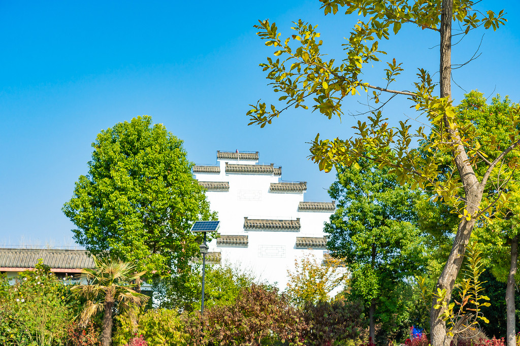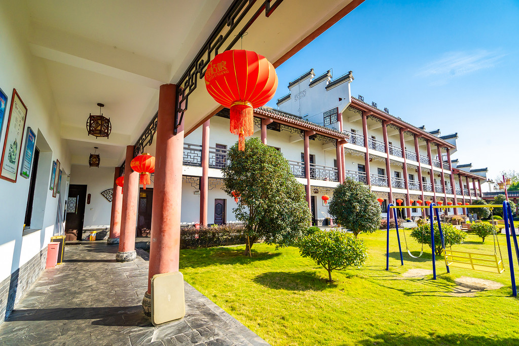 古色古香的长廊可以看到农庄徽派建筑的全貌,层叠的马头墙,宛如置身江南水乡。