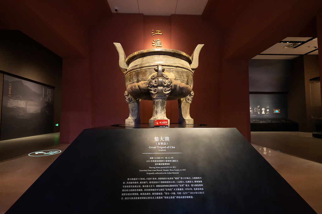 来到楚文化博物馆,一定要打卡就是入口的楚大鼎,这件大鼎是楚国“安邦定国”的国之重器,也是我国现存春秋战国时期最大的圆形青铜鼎,价值和地位可与后母戊大方鼎相媲美了。