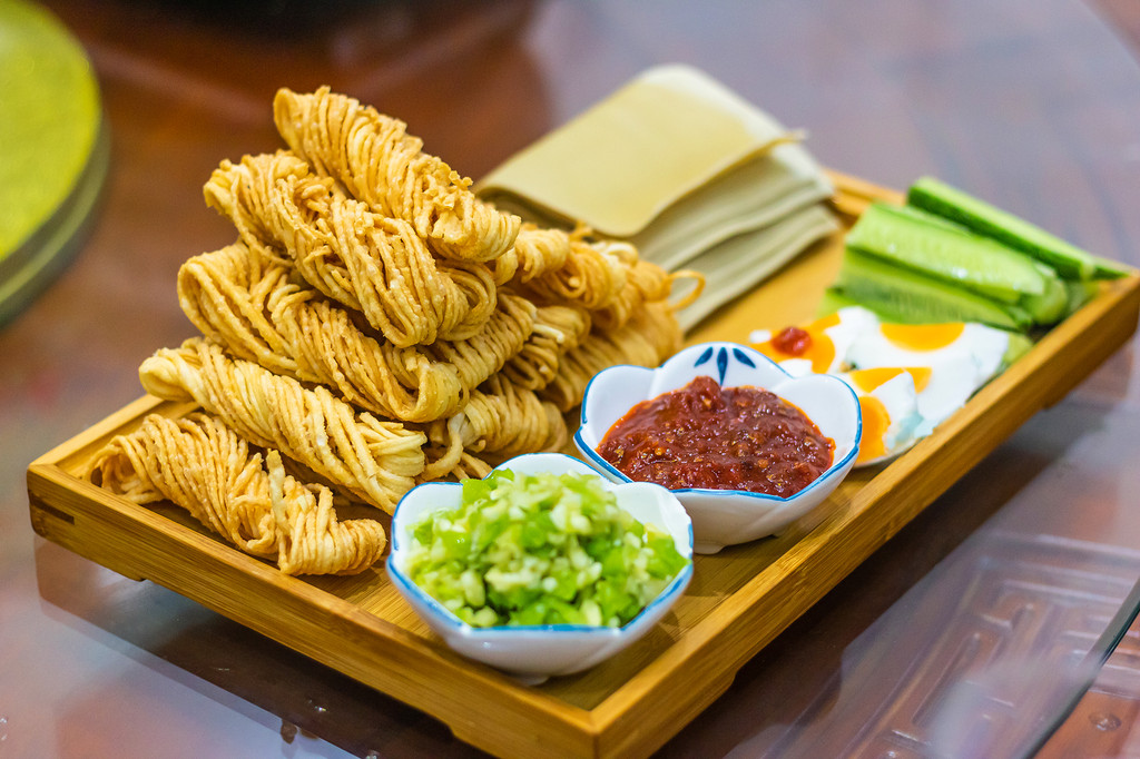 除了以上两种主食,寿县还有一种叫大救驾的小吃非常有名。相传是公元956年,后周大将赵匡胤奉诏攻打寿州(今寿县),久攻不克,积劳成疾,食这种糕点,恢复了健康。后来赵匡胤做了宋朝皇帝,赐名“大救驾”。因此本地还有着 “来到八公山下,不可不吃大救驾”这一说法。所以,如果你来寿县,一定要记得买上一份尝一尝哟。