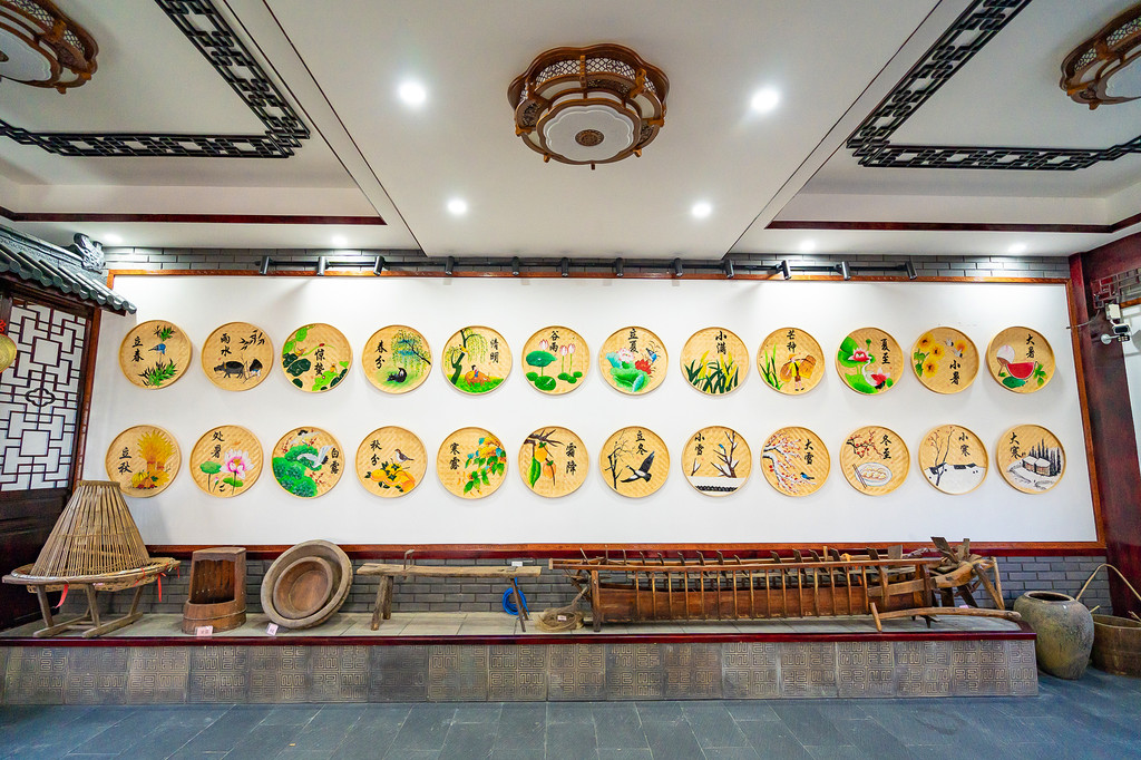 这里还有一处农耕文化展览馆可以免费参观,这里展示了各式各样的农耕用具,耙子、锄头、簸箕、木犁等等。还有一面适合打卡拍照的手绘二十四节气主题墙(二十四节气名称首见于西汉刘安的《淮南子·天文训》)