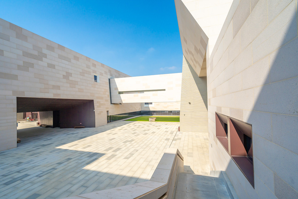 该馆建筑设计彰显了楚人“四方筑城”“荆楚高台”建筑理念,通过“瓮城”“方城”“斗城”建筑布局,融合了现代院落和极简主义设计手法。