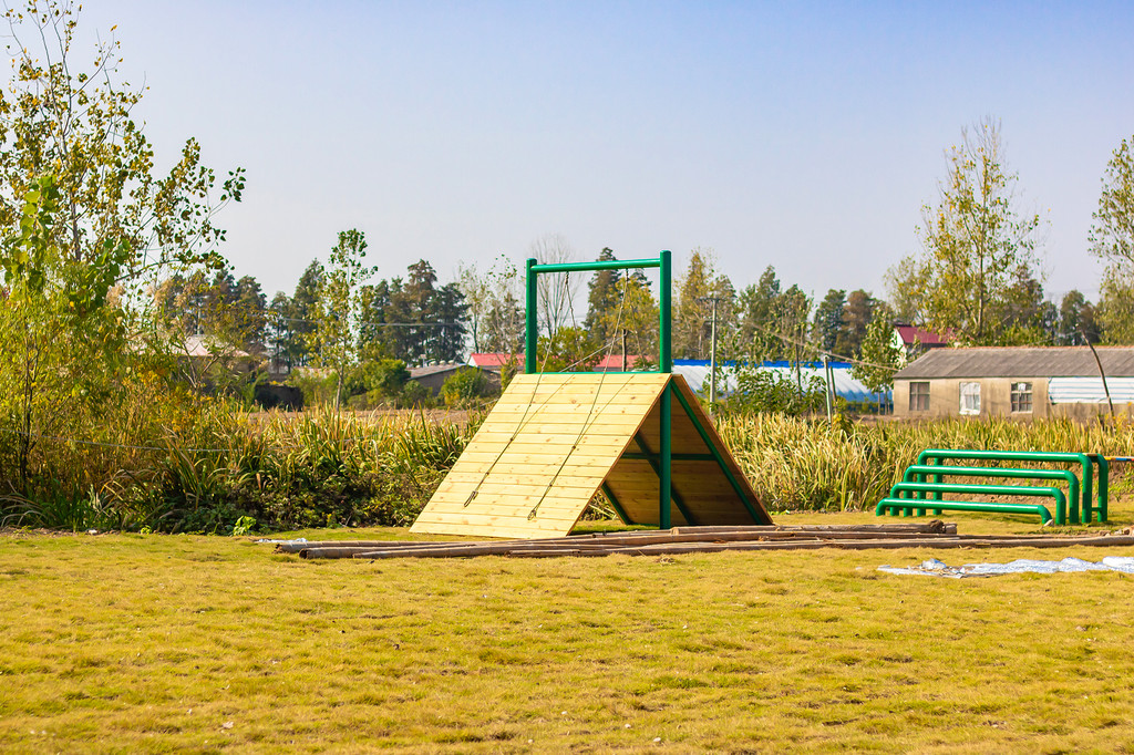 在农庄边的草坪上,正在建设一处拓展训练区域,老板说年底就基本能完工,期待建好之后的模样。