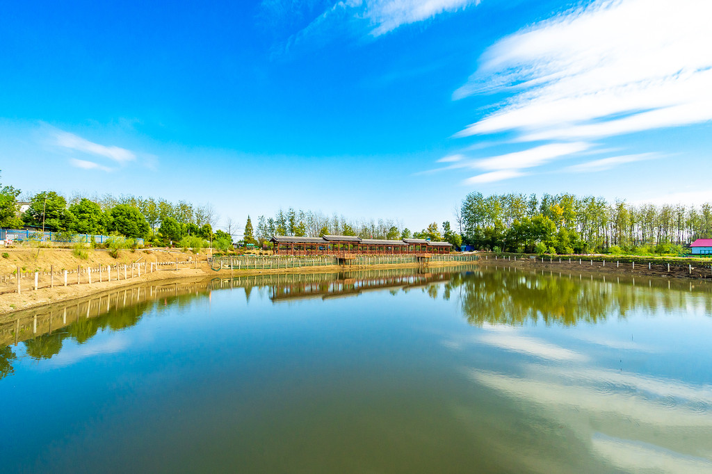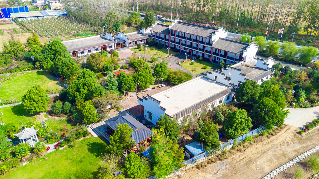 整个农庄是新徽派的设计风格,粉墙黛瓦马头墙与现代建筑元素完美融合,占地面积将近200亩,超大的院落空间和周边生态农田,还有一处可供垂钓休闲的水面,溜达游玩大半天完全没有问题。