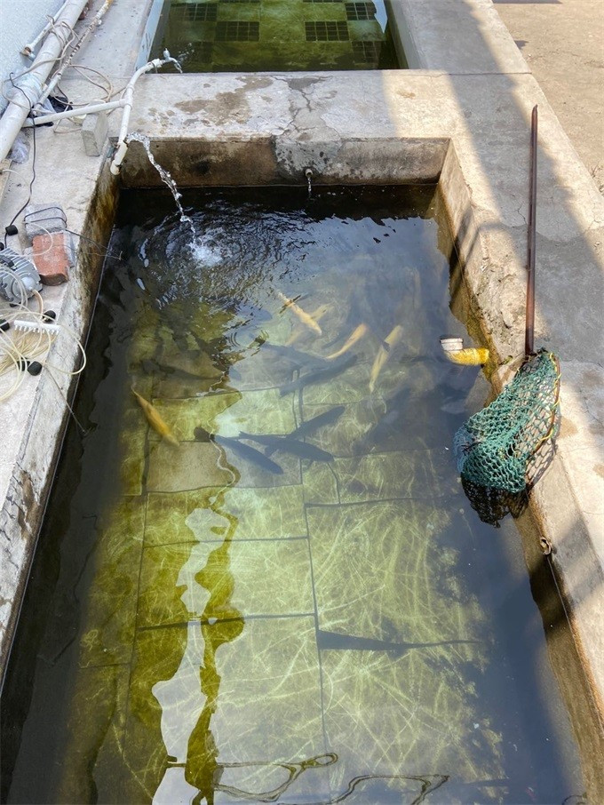 小院自家就有鱼池,吃的大铁锅顿鱼、烤鱼都是新鲜的,客人可自己选鱼。