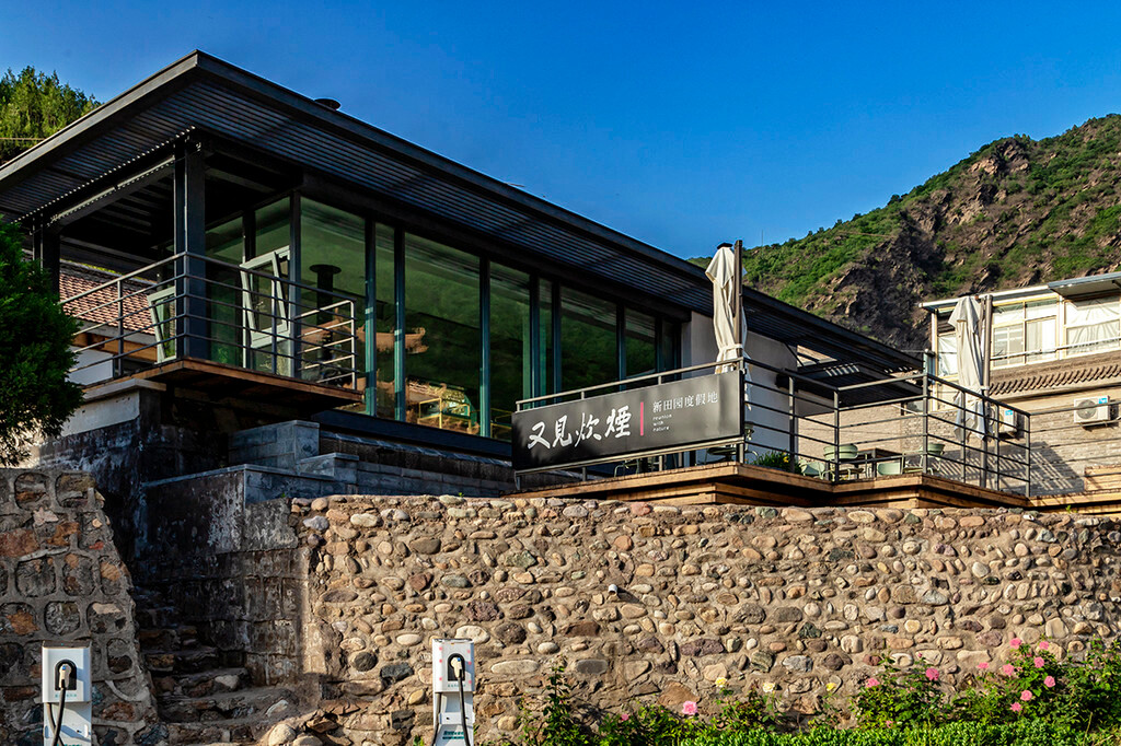 又见炊烟棒棒糖小院,座落于北京市怀柔区琉璃庙镇八宝堂村。八宝堂村地处北京怀柔白河峡谷风景区内,拥有得天独厚的自然景观,村落位于峡谷北侧半山腰上,群山环绕,白河蜿蜒流淌过谷底,是一个典型的小山村。