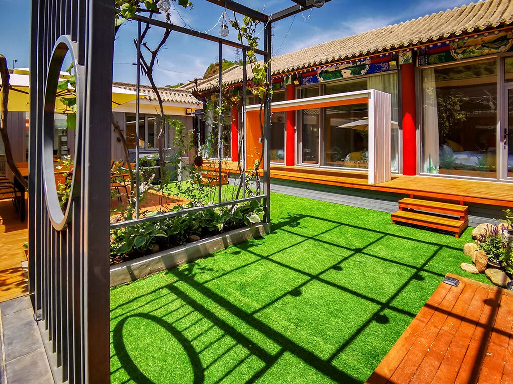 走进众多民居中的棒棒糖小院我眼前一亮,心中的田园牧歌似乎被颠覆,小院在保持原有建筑结构的基础上妙笔生花,中西合璧,几根简洁的线条一改庭院的风格,即时尚又大气,高调中透着惬意,端庄中透着温馨,闲适不失高雅,简约不失奢华。