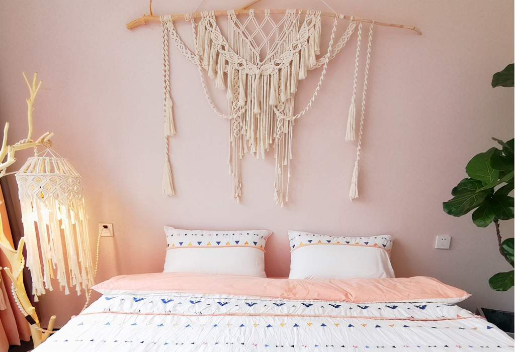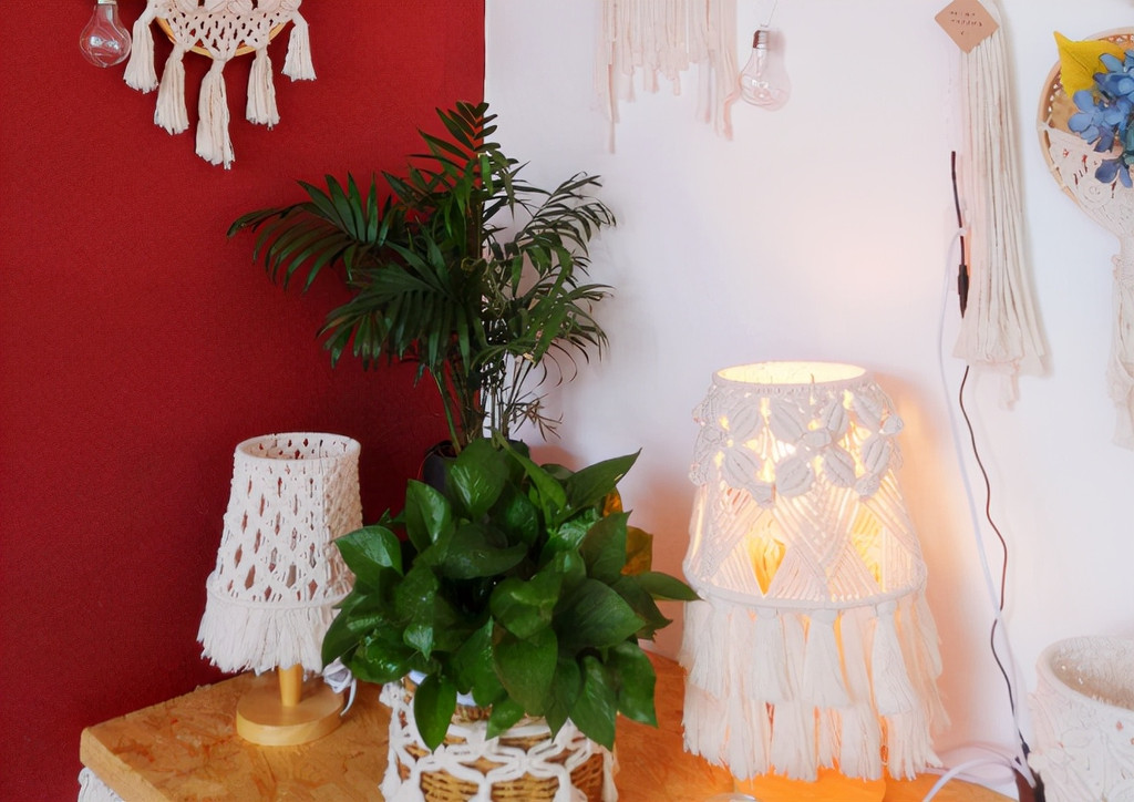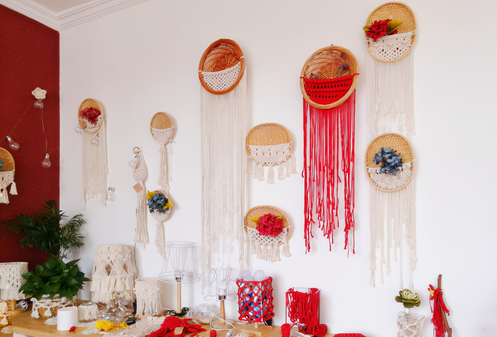 燕乔居房屋内墙壁上挂满琳琅满目的绳编工艺品更为老宅锦上添花。这些作品均是由二人亲手参与设计编织的,凝聚着两人辛勤的劳动和汗水,燕乔居—于温馨浪漫的绳编工艺中。