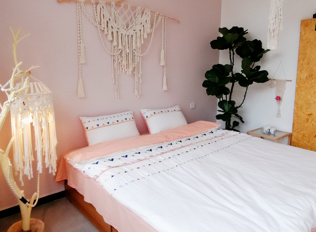 房间内白色的床单,物品摆放的整齐,进入房间内,细心的还会发现每一盏灯都活灵活现的变成了绳编工艺的“形象代言人”!那柔软绳子的线条将温暖的灯光衬托得越发温馨柔和,倍感惬意和舒心。