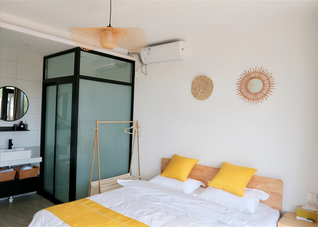 民宿的设计都是主人亲力亲为,内部简洁大气,细节上也格外用心,内部利落的线条、淡雅的色彩,简单又不失设计感,满足对自然与纯粹的向往,夜晚坐在露台上吹着山喝着啤酒,亦或是约三五好友撸串,这才是夏天理想的打开方式!