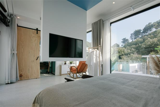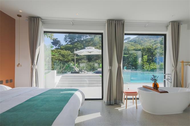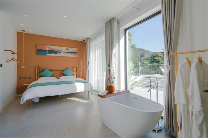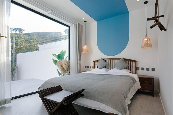 阔大落地的窗户让光线洒进房间,被褥充满阳光的味道,元气满满。