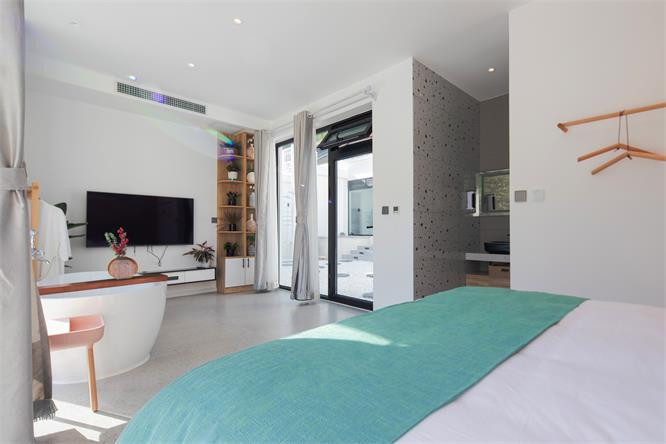设有浴缸。入夜后,在月光下泡上一次温情脉脉的泡泡浴,洗去尘世的疲惫,涤荡内心的杂念。