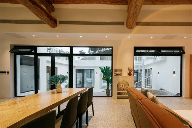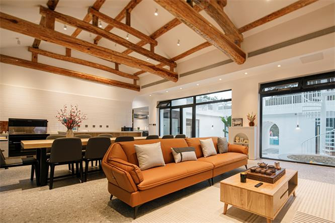 开放式厨房,便可以享受家一般的舒适。在这样的厨房里烧火做饭,烟火味道便是眼前的幸福。还有长长的餐桌,亲朋好友欢聚畅饮,为好时光干杯。