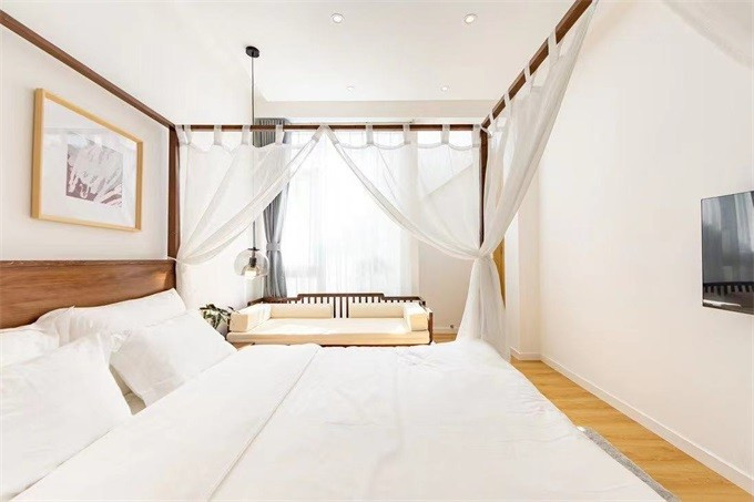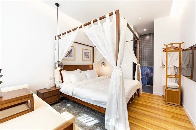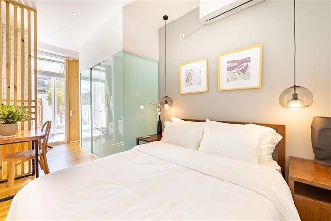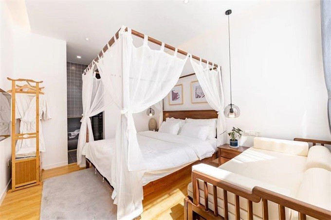 民宿房间有舒适简单的大床,处处散发着让人无法抗拒的魅力,在这里住上一宿,视觉上为整个空间注入慵懒的气息。早晨醒来,拉开窗帘,就躺在床上,让清新的晨风吹拂,瞬间就变得神清气爽起来 。
