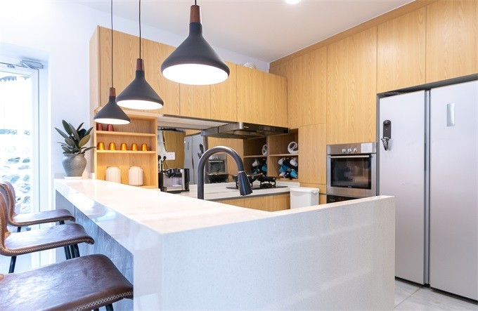 厨房配有韩国进口煎锅炒锅、进口西门子烤箱、消毒柜、雀巢咖啡机星巴克胶囊咖啡、德国进口WMF刀具。