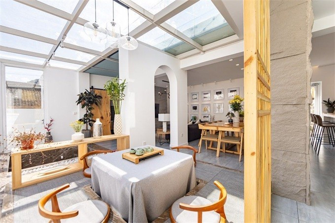 民宿配有茶具,在一个闲适的午后泡茶、赏花、读书,啜上一口茶,发上一会呆,计划着下一个目的地。在这里,一切都可以随遇而安,也不用急着赶路,感受“心远地自偏”的片刻宁静。