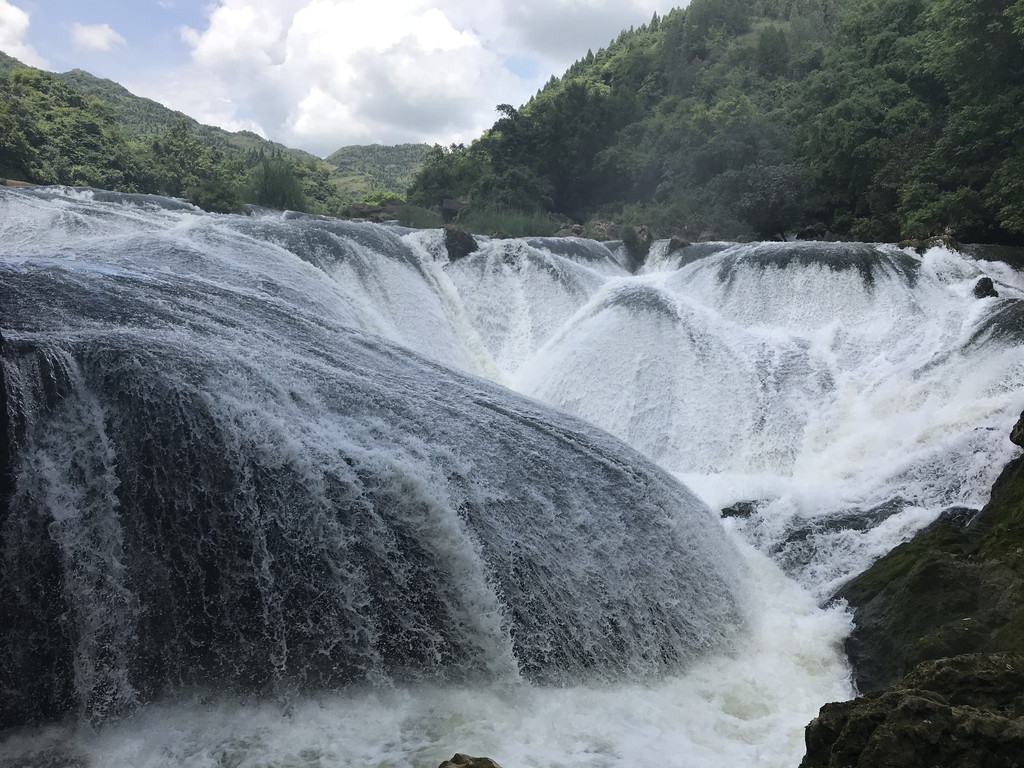 8月1日早上,大家都觉得累,就多睡一会儿,起床已经八点多了。热心的饭店老板告诉我们大瀑布每天都挤满人,特别是水帘洞根本进不去。建议我们今天先去玩天星桥和陡坡塘景区,明天一早他会开私家车送我们进入大瀑布景区,这样可以避开拥挤的人群。