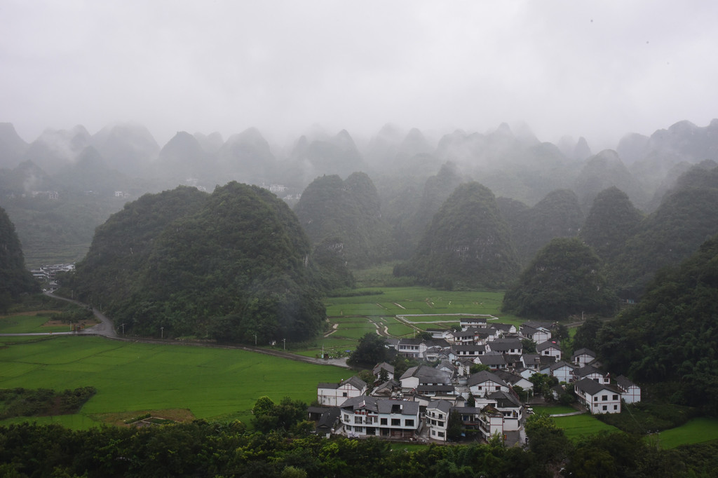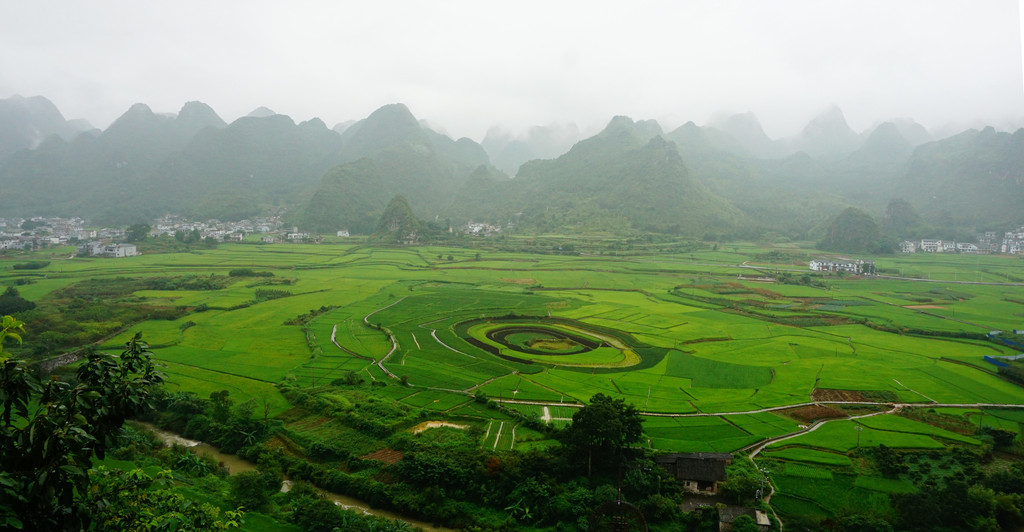 万峰林以其“天下山峰何其多,惟有此处峰成林”的独特美景而登上国家名片《美丽中国》。8月3日,坐着景区游览车进入万峰林,一座座奇美的山峦与碧绿的田野、弯曲的河流、古朴的村寨、葱郁的树林融为一体,构成大自然中最佳的生态环境,形成天底下罕见的峰林田园风光(图24)。看了一遍觉得仍不过瘾,我们又自己开车进入万峰林的村村寨寨,在田间小径,空气中弥漫着沁人心脾的稻花香。要知道贵州基本是山地。能种水稻的平地大概也就是这里了。