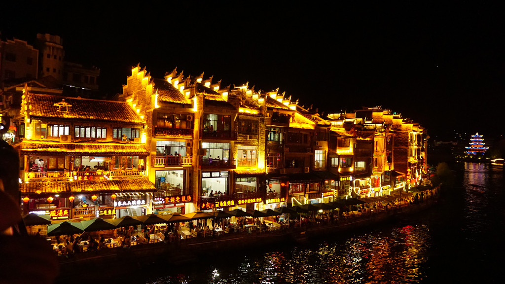 从凤凰出来就驱车到“黔东门户”贵州镇远,晚上就住镇远的河边客栈。舞阳河两岸璀璨的灯光和水面上的波光灯影交相辉映,千年古镇显得分外妖娆。