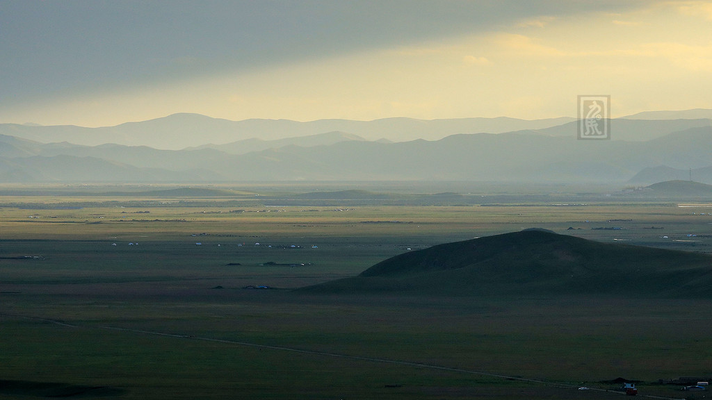 将近下午7时,平台上气流比较乱,分不清是南风北风但是风力很大还冷。凉风一个劲往脖子里灌,虽然穿了加厚的卫衣和抓绒冲锋衣我依然感觉到冷。西边的阳光阴沉沉的不很明朗,一团乌云在远处堆积,不久那边就下起了雨。