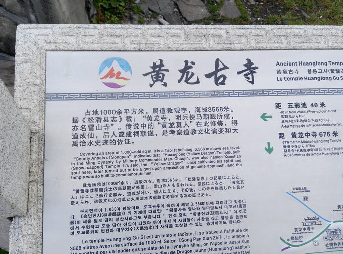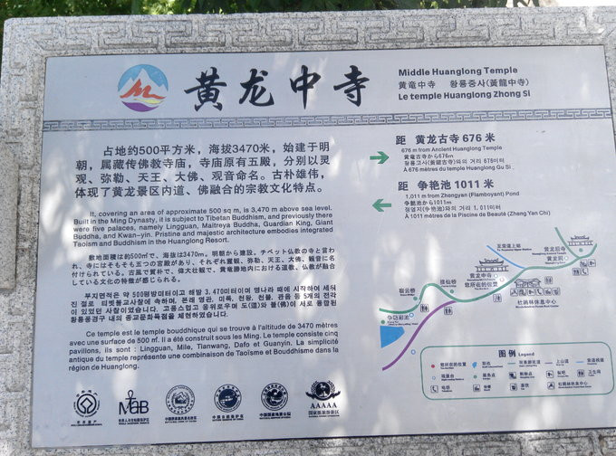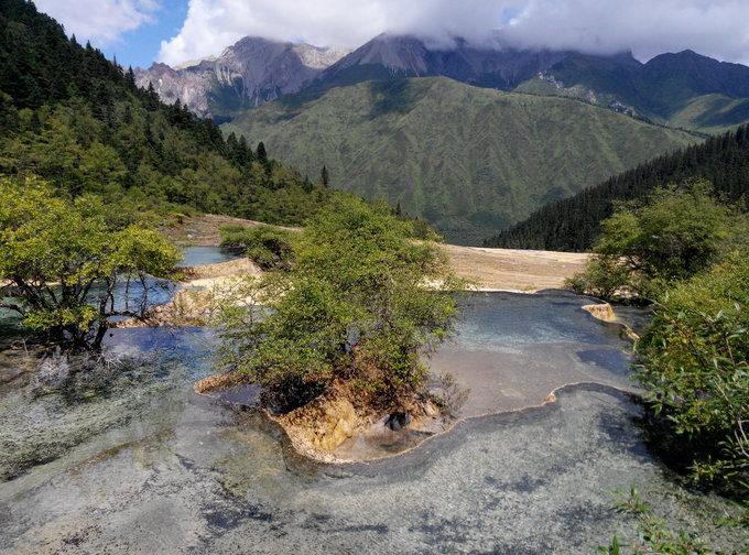 黄龙位于四川省阿坝藏族羌族自治州松潘县境内,是中国唯一保护完好的高原湿地,与九寨沟相距100千米,海拔1700~5588米,地貌特征是山雄峡峻。因沟中有许多彩池,随着周围景色变化和阳光照射角度变化变幻出五彩的颜色,被誉为"人间瑶池",