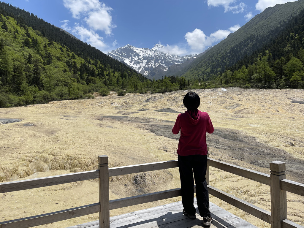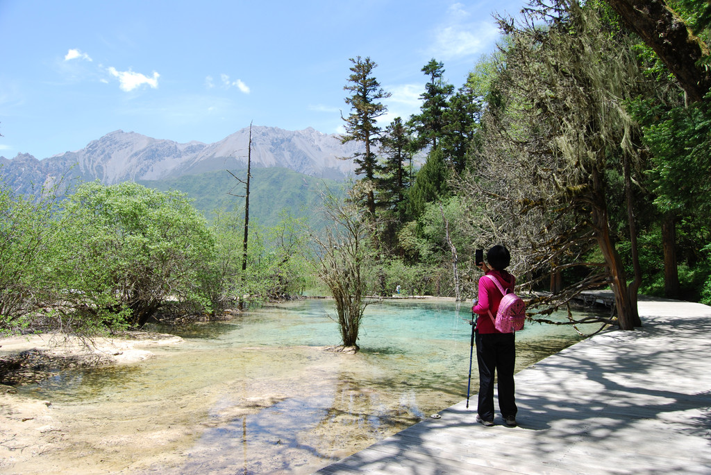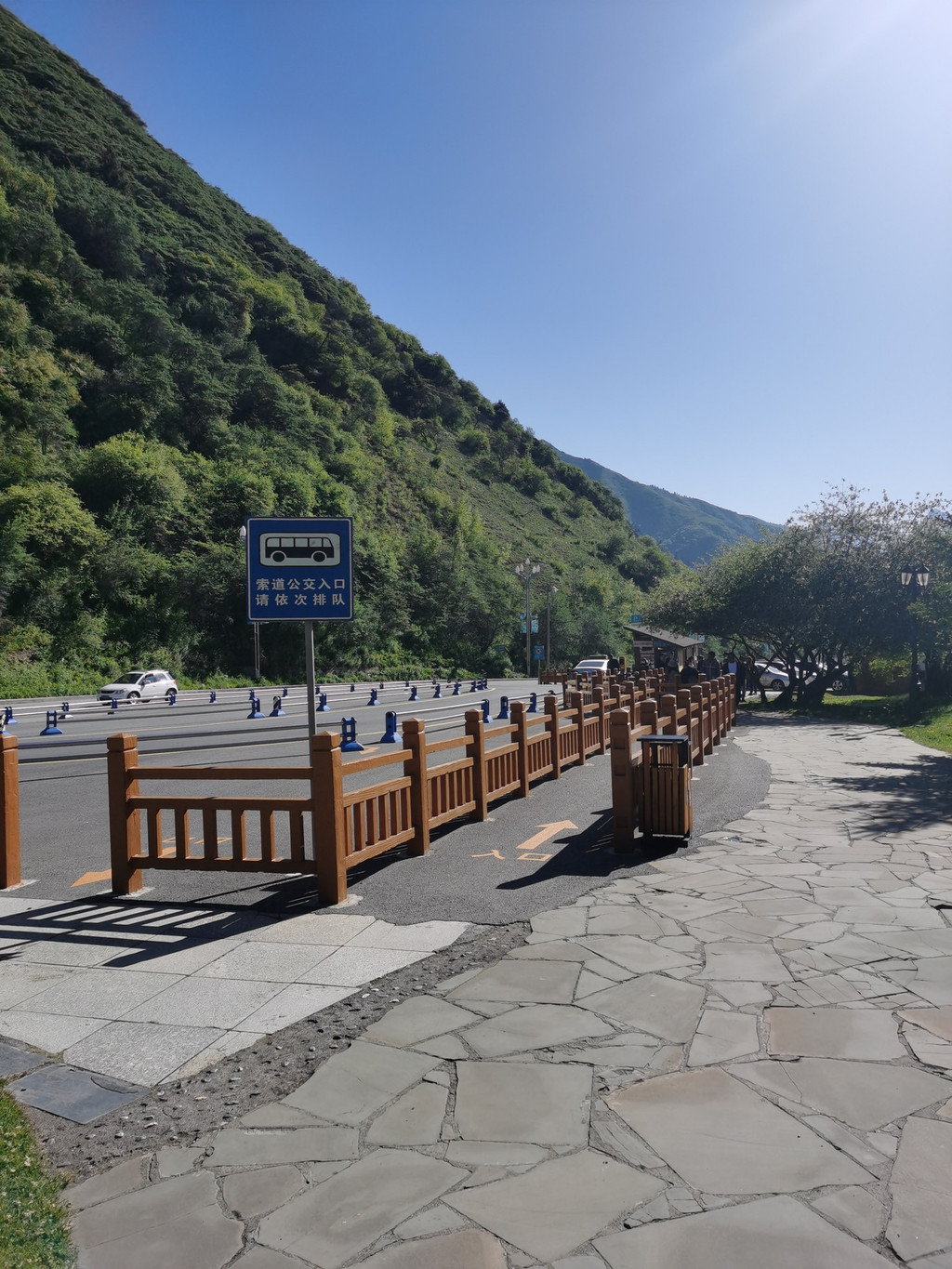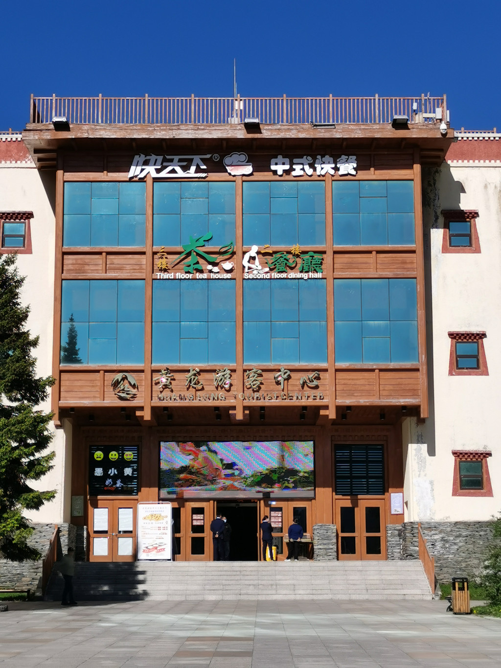 从松潘的酒店到黄龙,因为有了隧道路程不到30km,半小时即到(以前要翻越雪宝鼎山,时间很长)。