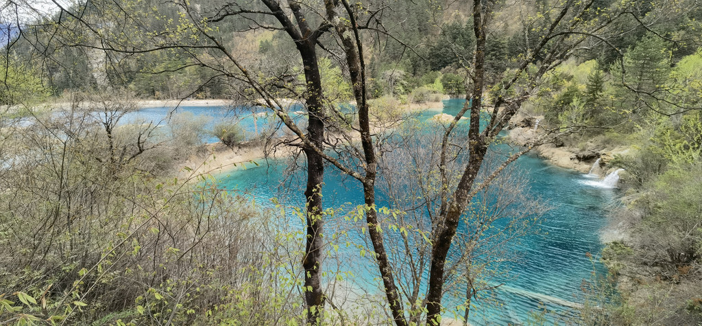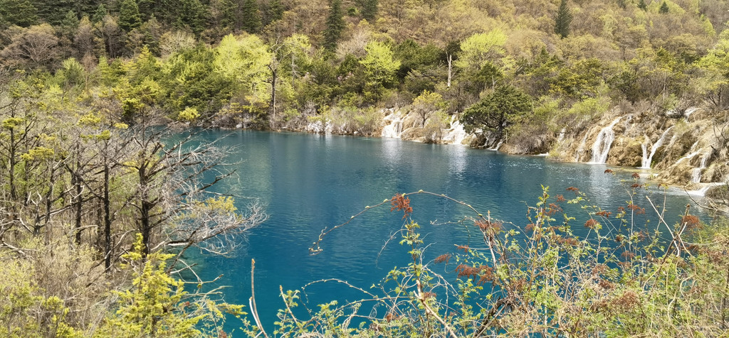 因是4月份,水量严重不足,沿途各种名称的水池尽皆干涸。但可想像有水时基本与五彩池大差不离。