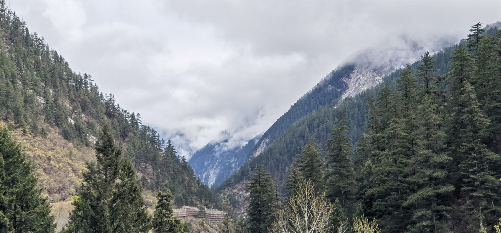 山上是冬季,山下则是春季。出离景区,入住川主寺镇。图为路途中拍到的远山风景。