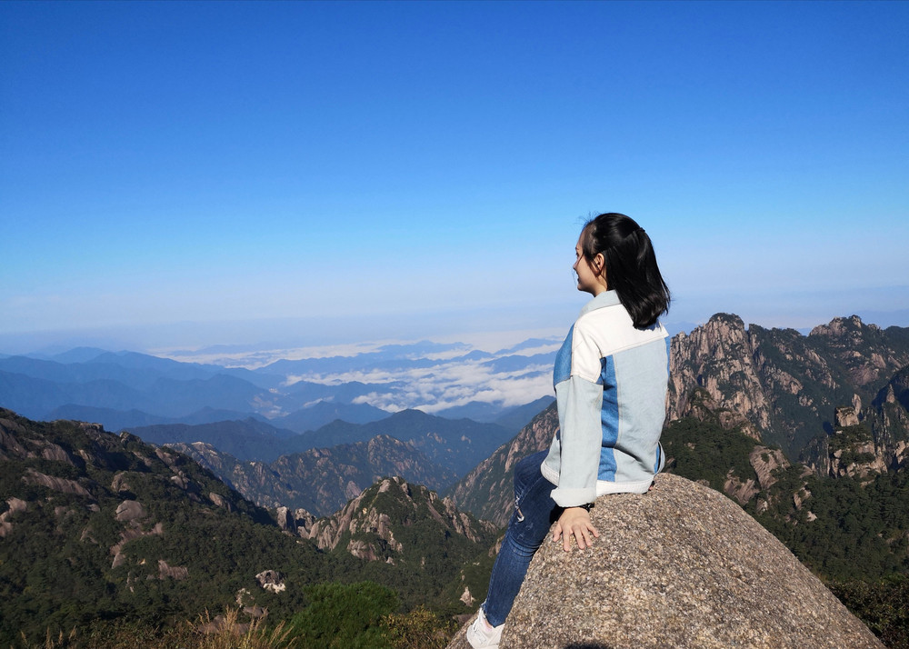 这次出游黄山运气倒还不错,在宏村的时候,还能感受到节假日出游人头攒动的氛围,民宿的老板还给我们打预防针说第二天的黄山上山索道可能排队时间会比较久。结果我们第二天午饭后上山的索道,完全就不用排队,随到随走,太意外了。可能一日游的旅客比较多吧,早上上山的人多,像我们这样中午上山的人比较少。最后一天也是差不多午饭时间下山,下山索道也完全不用排队。去过黄山的人都说每个不同的时间去都会看到不一样的黄山景致,雨天的、雪天的、多云的、晴朗的……我们这次运气超好,在山上的两天,看到了完全不同的景致,第一天是云雾缭绕的仙境,第二天是晴空万里的清明,还有幸看到了日出和云海胜景,真得超值。看日出的时候感受到了人山人海,我们去得晚了,没占到好位置,好不容易挤进一个边边角落拍了几张照片。讲真没带单反相机根本拍不出日出的美景,现场看到的比任何照片都震撼。看着红日从铺满霞光的天边缓缓跃出的瞬间,惊叹大自然的蔚为壮观,内心的欢喜无法言语。除了日出外在晴朗的日子里居然能看到云海也是出人意料的,我们在鳌鱼峰看到了美丽的云海,真得不虚此行。