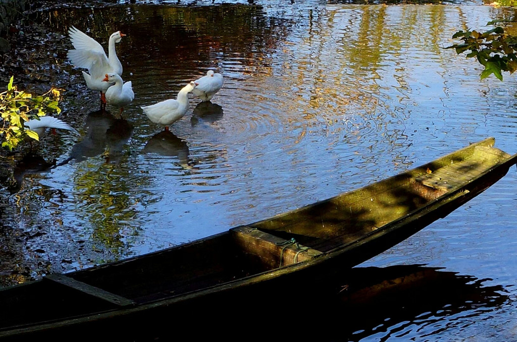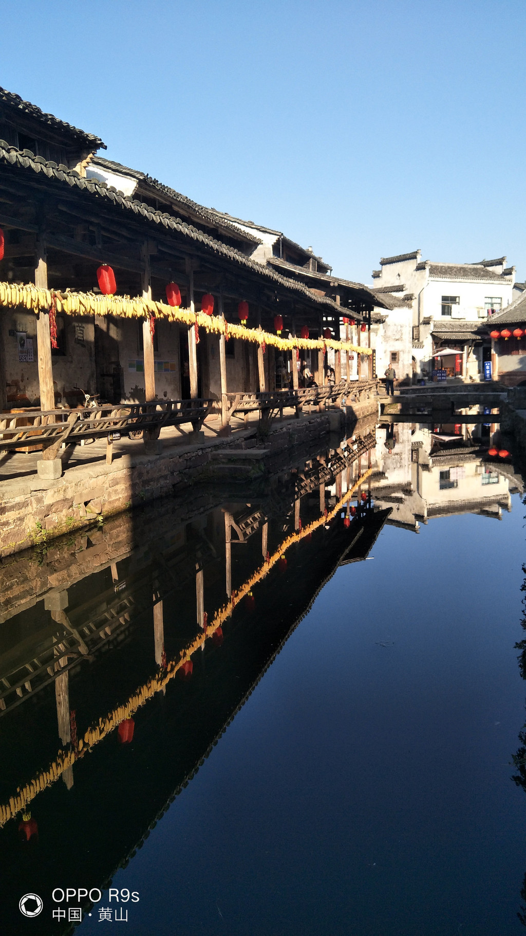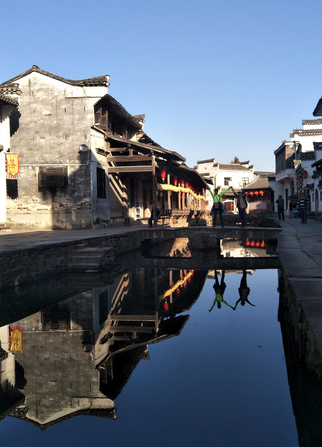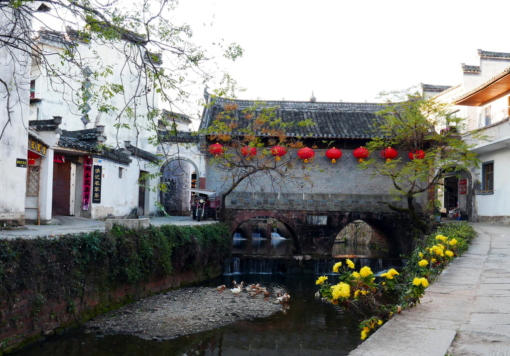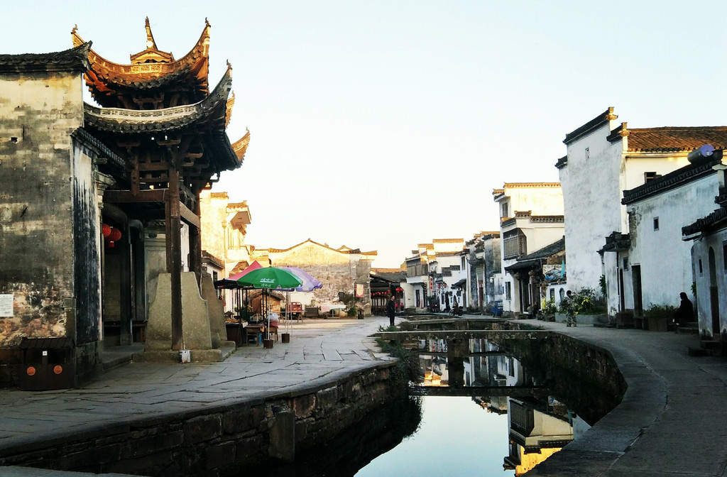 村里面有一条水街,为村子的主要街道,两岸分布着近百幢徽派民居,有40余米的避雨长廊倒映在清澈的水中,廊下临河一边是美人靠,供人们歇息聊天之用。由于没有受到商业氛围的影响,村子保留了和谐、古老的感觉。