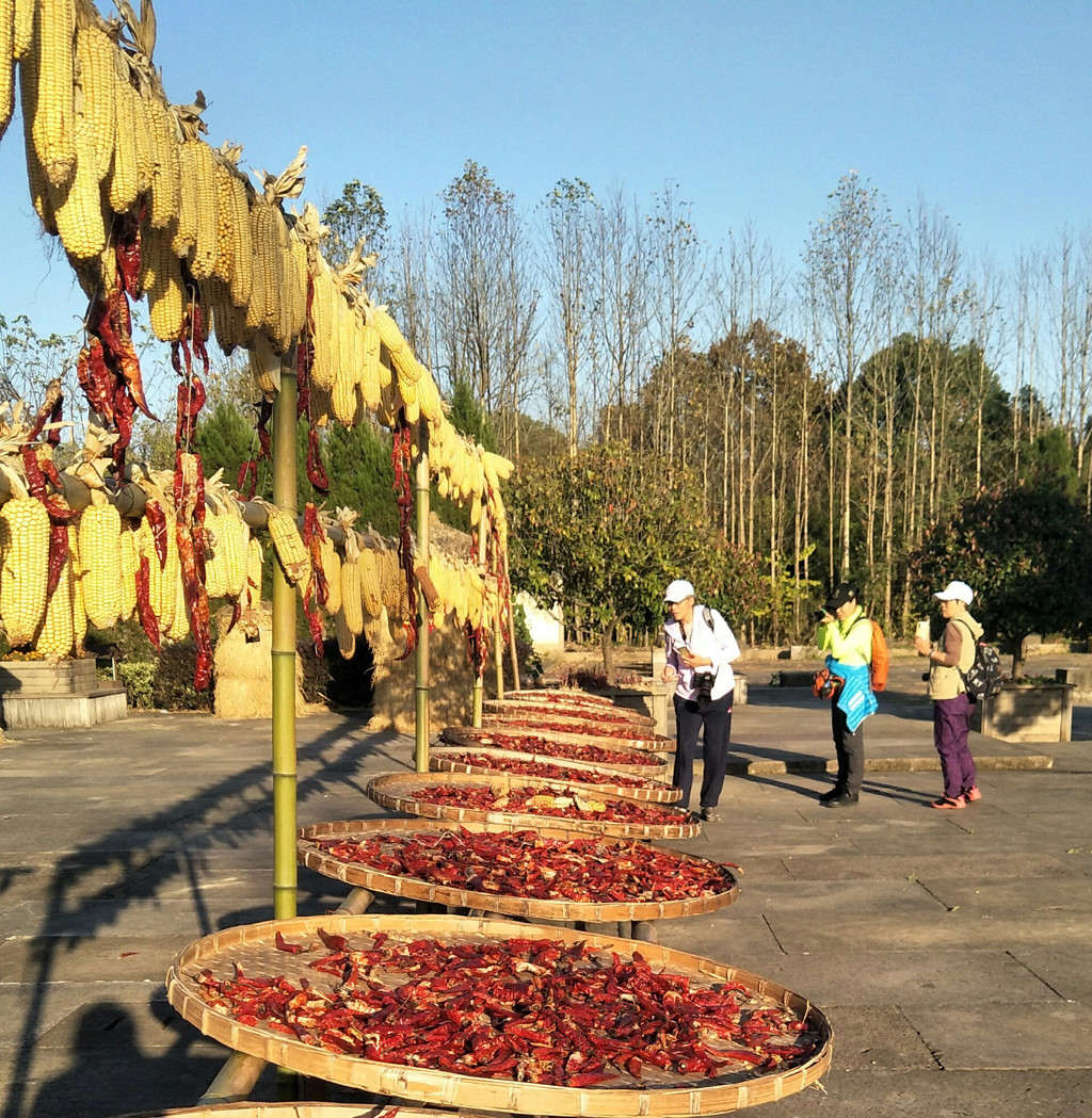 村子的后面有一个广场,农家把秋收的果实晾晒在广场上