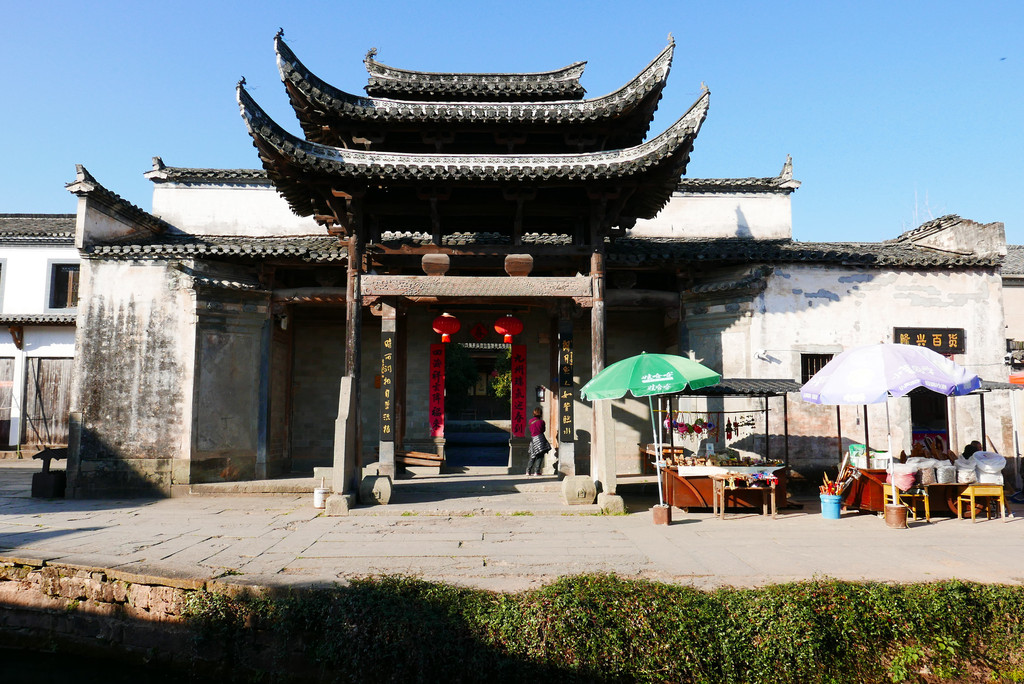 潜口民宅—— 于1982年5月国家文物局批准建立"明代民居建筑群",并列入全国文物保护计划。按照"原拆原建、集中保护"的原则,将散落于歙(she)县境内民间且不宜就地保护的明清古建筑进行集中保护,建成潜口民宅这样一座古建筑专题博物馆。因为是博物馆所以免费参观