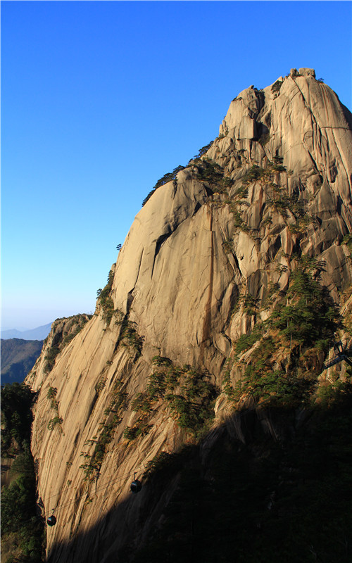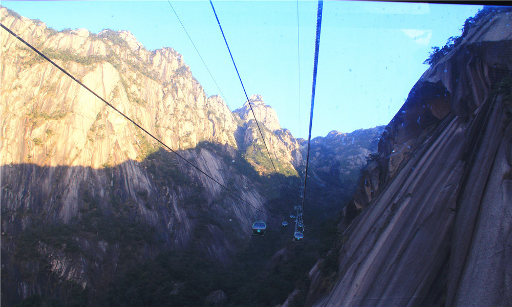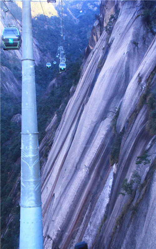 黄山玉屏索道全长2176米,高差752米,为自动循环吊厢式客运索道,乘坐舒适且便于观景。