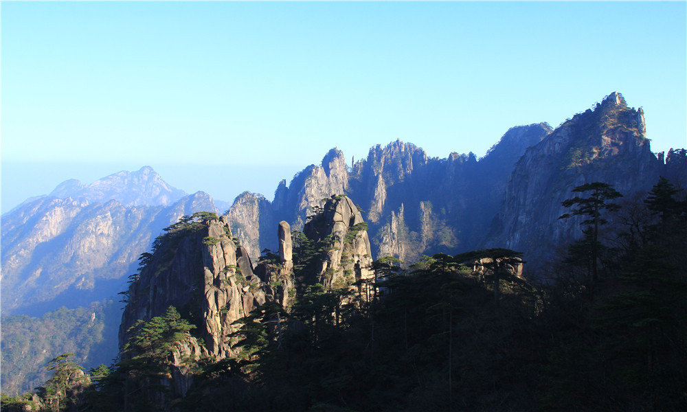 黄山千峰竞秀,万壑峥嵘。有名可指的就有72山峰,其中“莲花”、“光明顶”、“天都”三大主峰,均在海拔1800米以上,拔地极天,气势磅礴,雄姿灵秀。
