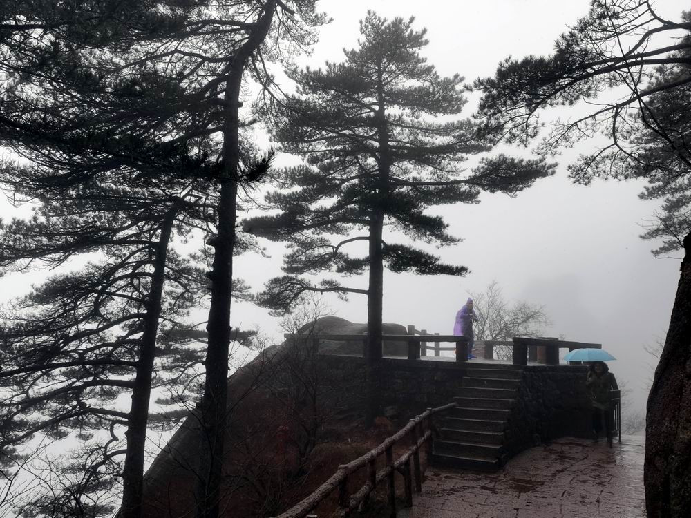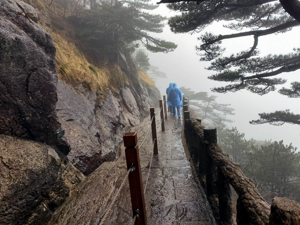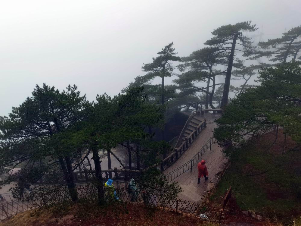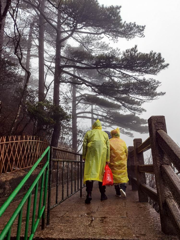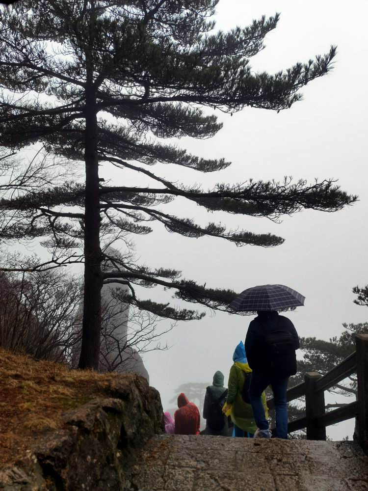 3月雨中的黄山,很冷。导游征得大家同意后,决定提前下山。
