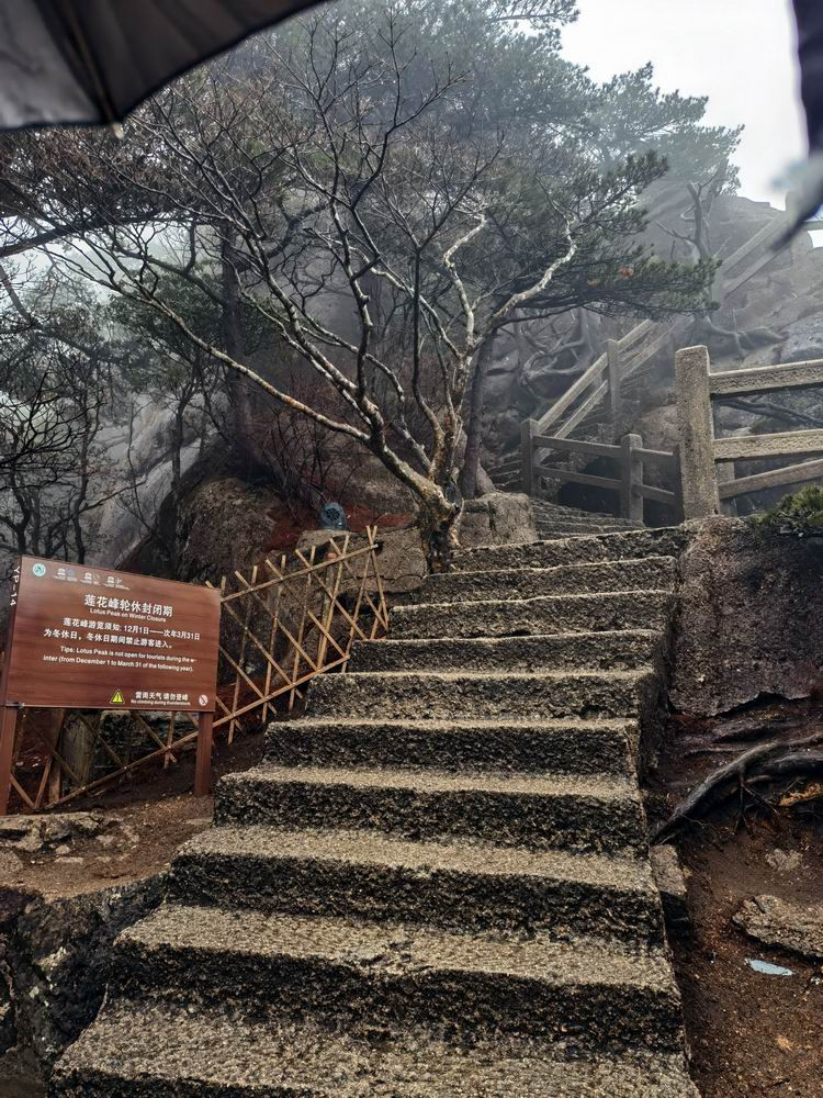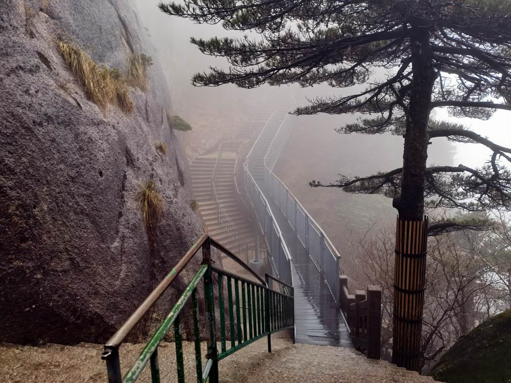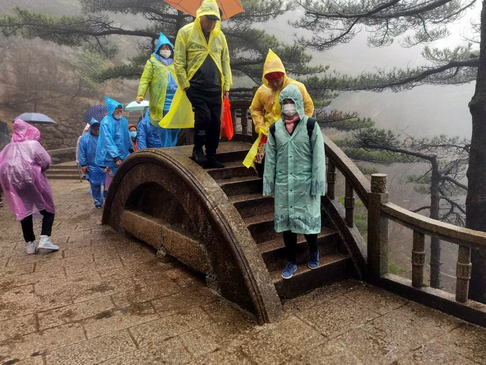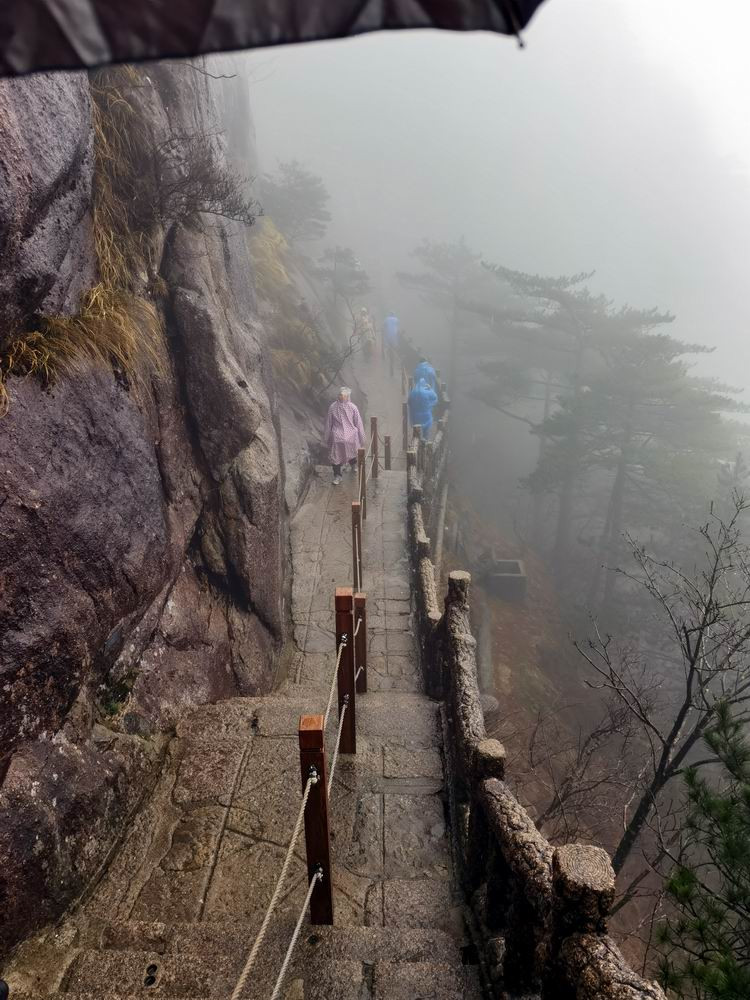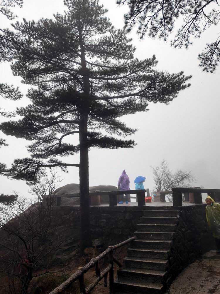 3月雨中的黄山,很冷。导游征得大家同意后,决定提前下山。