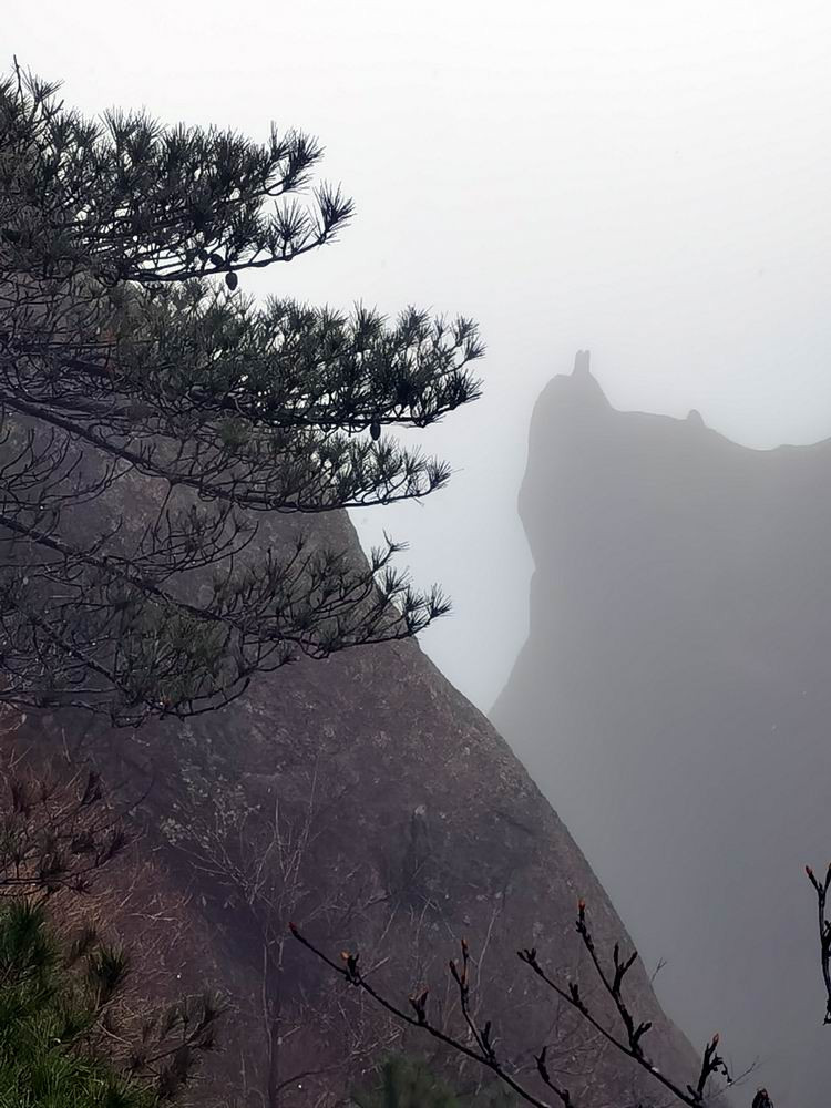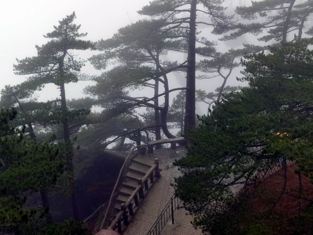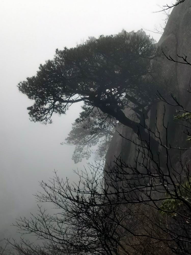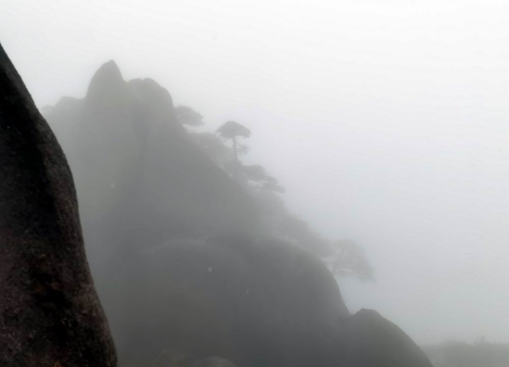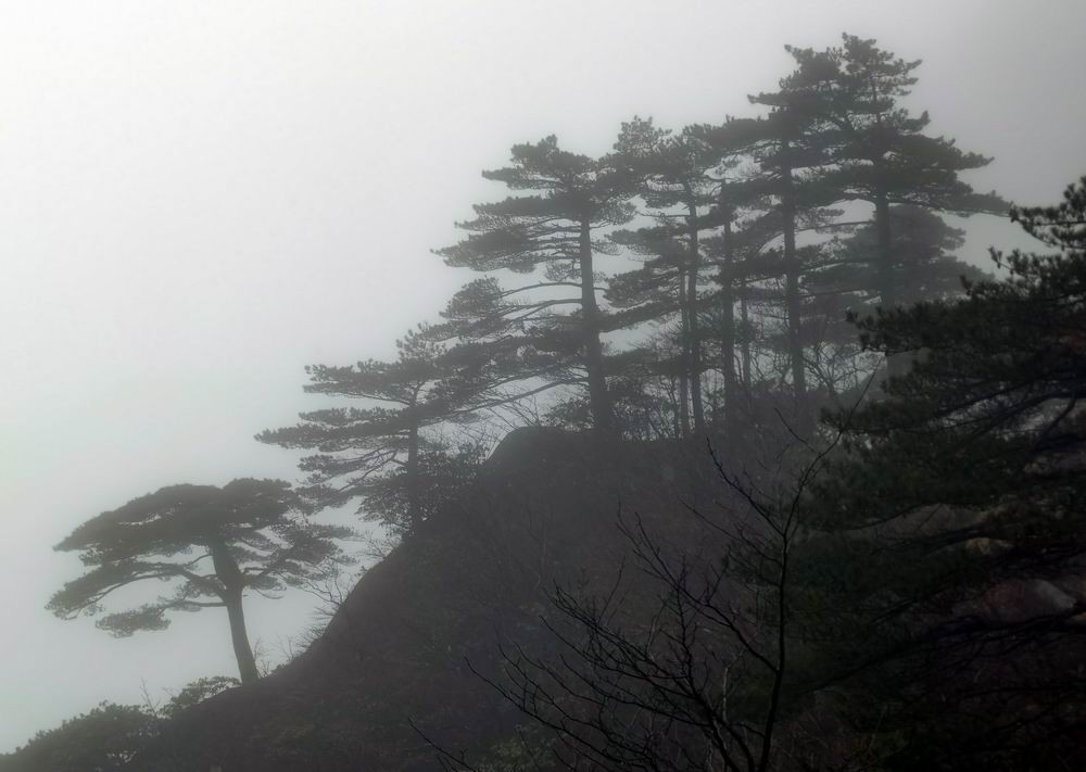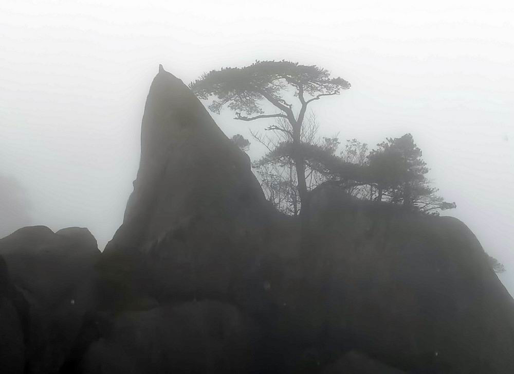雨雾中的奇松怪石