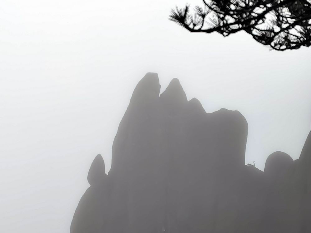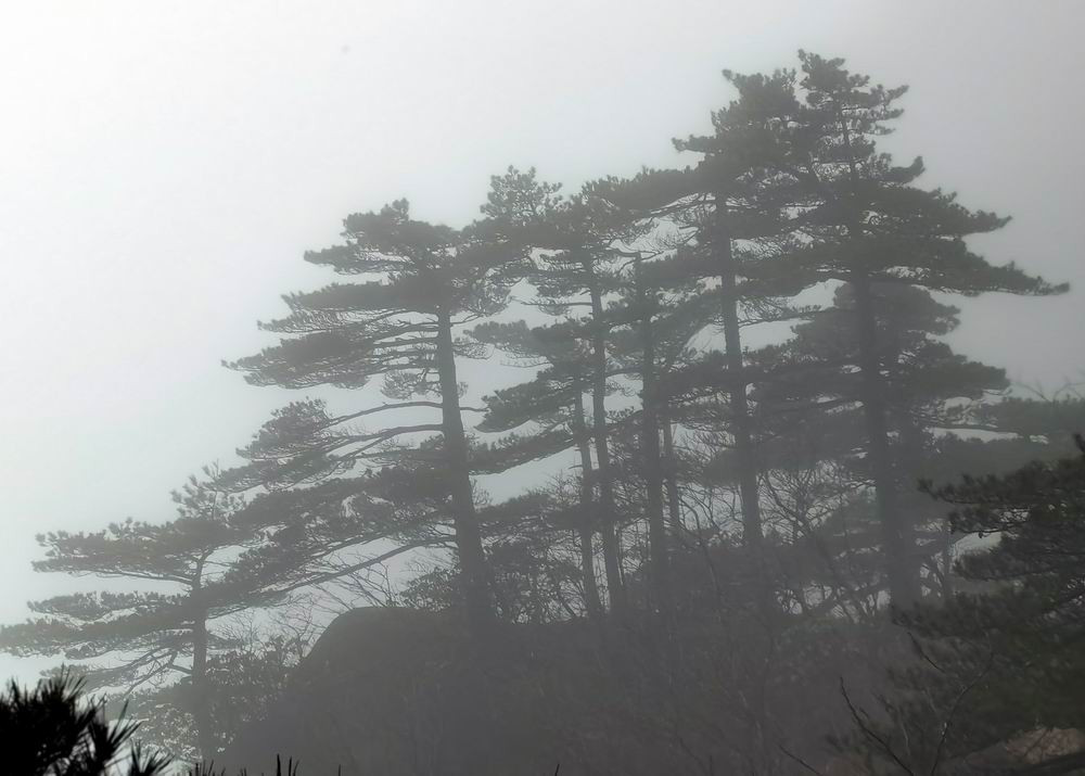 雾蒙蒙,雨蒙蒙,难见黄山松。