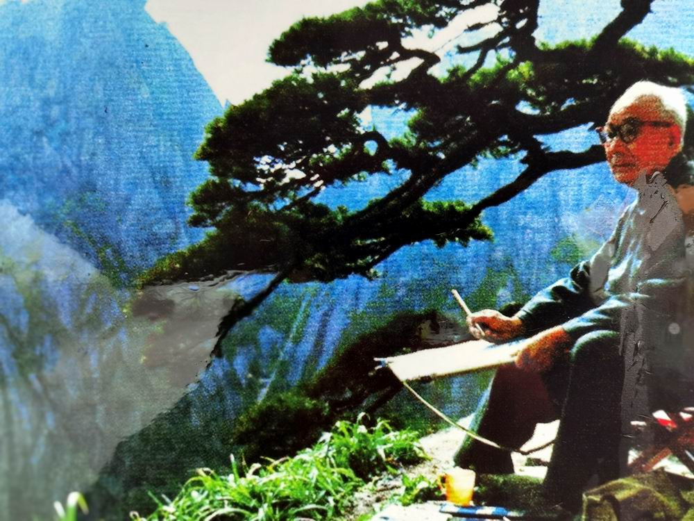 著名国画家李可染,在玉屏楼宾馆外写生。