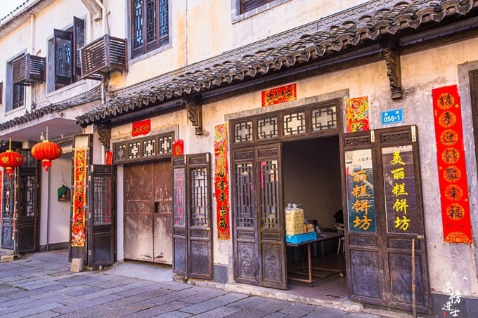 街边的建筑一楼多为商铺,二楼住人, 皖南 特有的精致花窗、门坊,即使是在一家极朴素、极简单的小食店里依然体现得淋漓尽致。